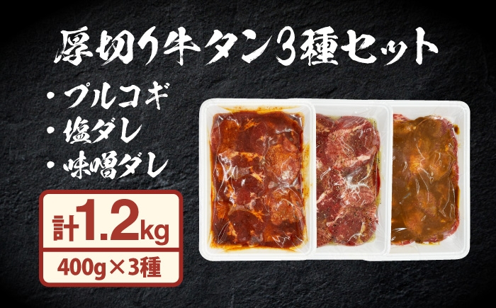 今日はどれにする?3つの味の「厚切り牛タン1.2kg」! 厚切り牛タン3種セット(プルコギ・塩ダレ・味噌ダレ) 計1.2kg 広川町 / 株式会社POWER EAST CONNECTION [AFAZ033]