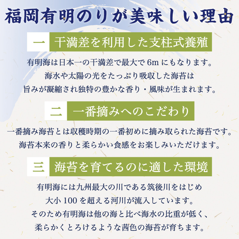 | 容量 | 味のり・塩のり・焼のり 7枚(10切70枚)×9本(各3本) 味のり:乾のり、砂糖、醤油(小麦・大豆を含む)、塩、みりん、昆布、えび、酒、唐辛子、鰹だし 塩のり:乾のり、ごま油、塩 焼のり:乾のり |