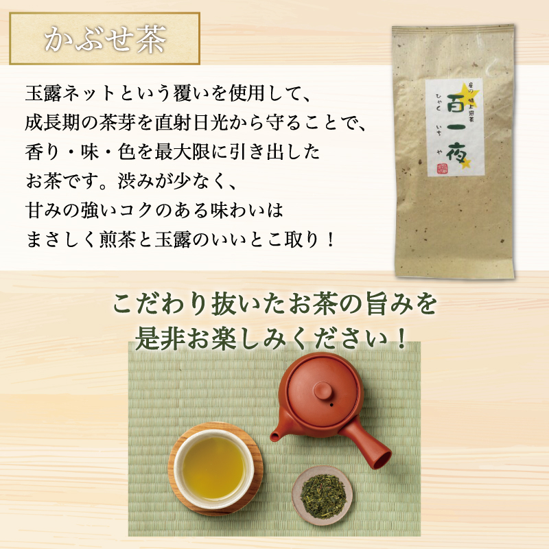 | 容量 | 八女茶(上煎茶、高級煎茶、かぶせ茶)[80g×各1本] 原材料:緑茶(国産) 保存方法:高温多湿を避け保存 |