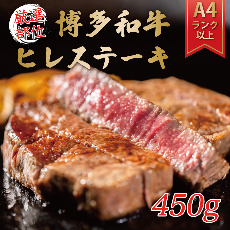 博多和牛ヒレステーキ 450g(150g×3枚) [a9344] 株式会社Meat Plus ※配送不可:離島【返礼品】添田町 ふるさと納税