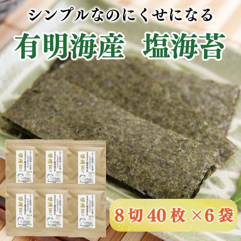 パリッとした食感、有明海産ならではの海苔の風味が楽しめる、塩とごま油だけの塩のり 塩のり 8切40枚×6袋入 福岡有明のり [a9268] 株式会社 ゼロプラス 【返礼品】添田町 ふるさと納税