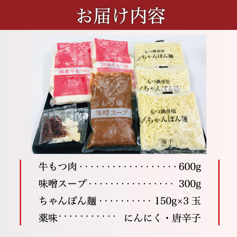 「もつ2倍」博多もつ鍋(味噌味)3人前 [a9391] 株式会社 海千 ※配送不可:離島【返礼品】添田町 ふるさと納税