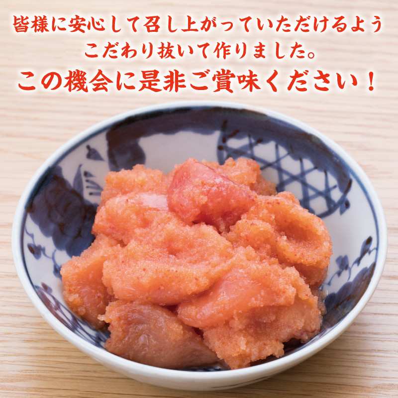 製造過程で崩れたたらこを集めた小切れ(切れ子)となりますので訳アリとしてご提供いたします。形は不揃いですが、味も品質も切子と変わらない家庭用明太子です。