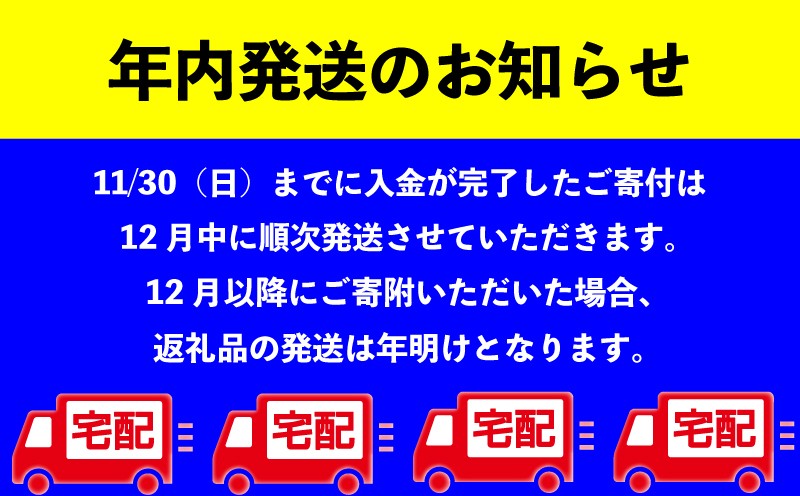 入金確認後、1~3か月以内にお届けいたします。 ※ご寄附状況によっては前後する可能性がございます。 ※日付指定・不在日のご要望は一切お受けできません。 ※北海道・沖縄の配送は承っておりません。ご了承頂けますと幸いです。 |
