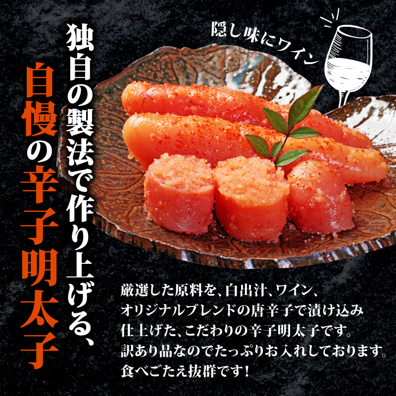 形は不揃いですが、味も品質も贈答品向けと変わらない家庭用明太子です。是非この機会にご賞味ください。