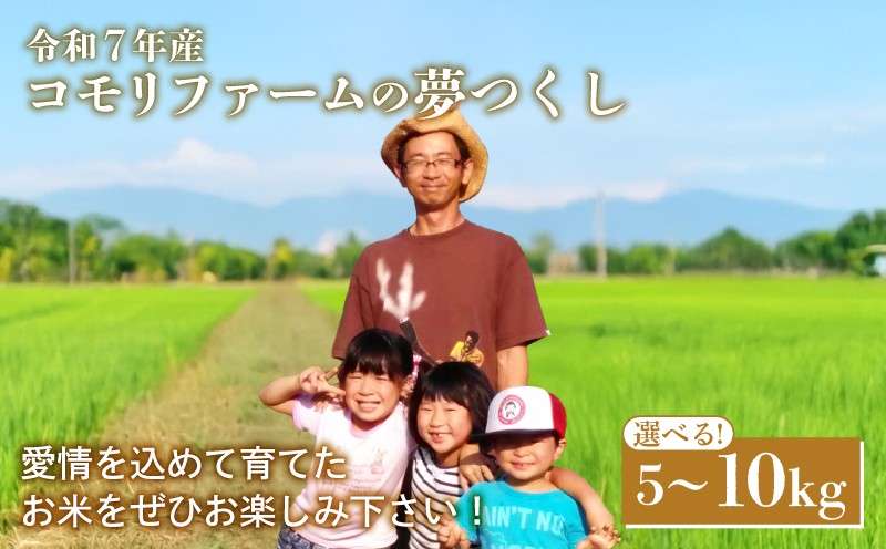 自然豊かな町で育った夢つくしをぜひご賞味ください 【新米】 夢つくし 米 5kg 10kg (5kg×2) 令和7年産 新米 コモリファーム rice ライス 米 お米 こめ コメ 白米 ブランド 数量限定 限定 国産 福岡県産米 福岡県産 長期保存 備蓄 備蓄米 防災 ご飯 飯 コメ 朝食 夕ご飯 福岡 川崎町
