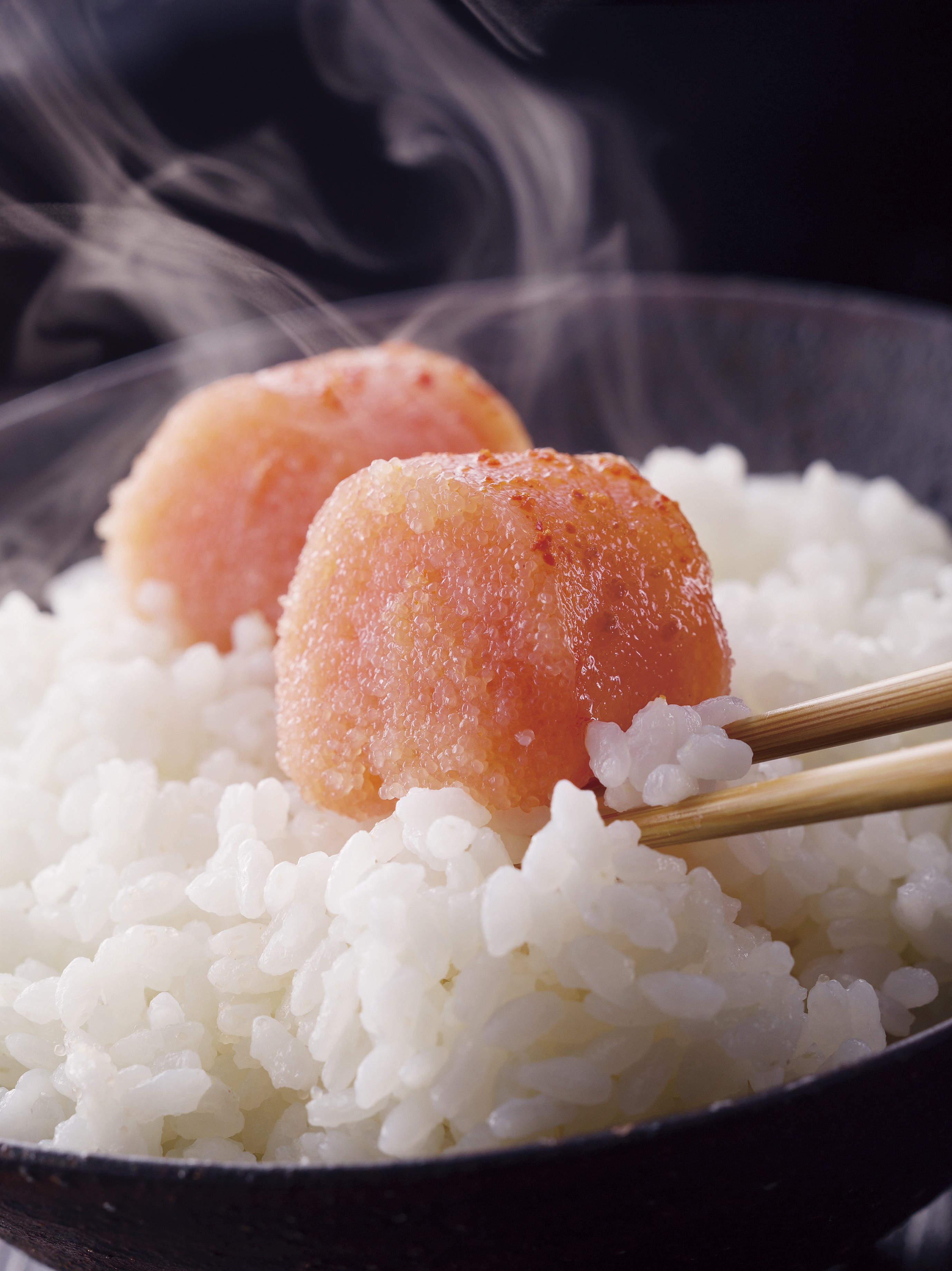 素材は極寒のベーリング海・オホーツク海で水揚げされた新鮮なスケトウダラの卵。匠の厳しい目でチェックし、皮の厚み、ハリなど、さまざまな基準で選び抜かれたものを使用しています。