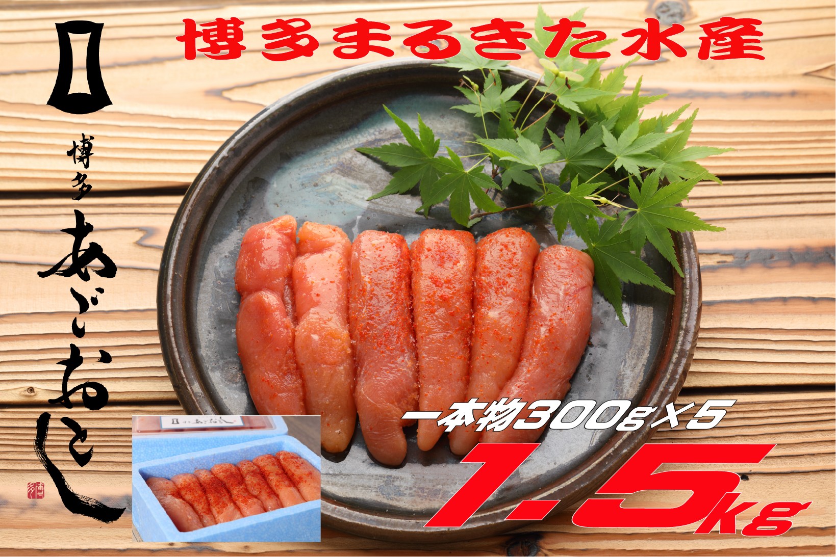 「博多あごおとし」でおなじみの博多まるきた水産 博多まるきた水産 無着色辛子明太子1.5kg(一本物300g×5)