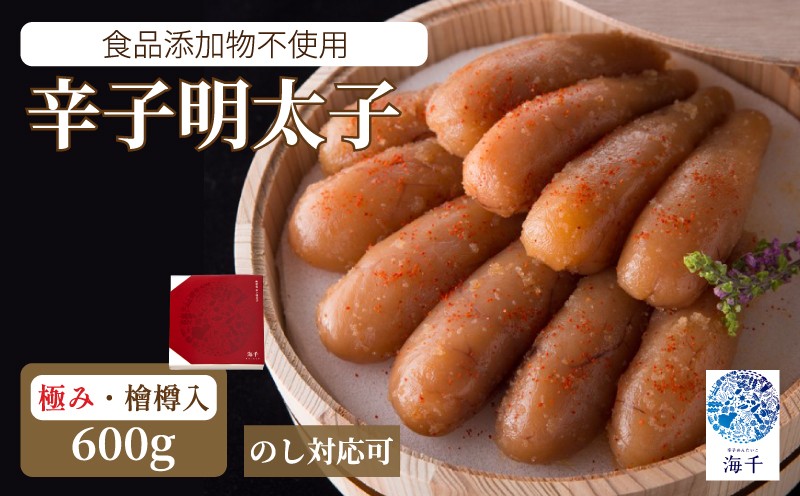 贈る人にも、贈られる人にも。喜ばれる博多の味。 「食品添加物不使用」極み明太子 檜樽入(600g) 明太子 博多明太子 明太 めんたい 600g 福岡名物 辛子明太子 贈答用 高級感 国産 檜樽 冷凍 海千 明太子 福岡 川崎
