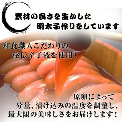 うまみ堂の辛子明太子は、明太子本来の美味しさを活かすため、程よいピリ辛なのが特徴です。