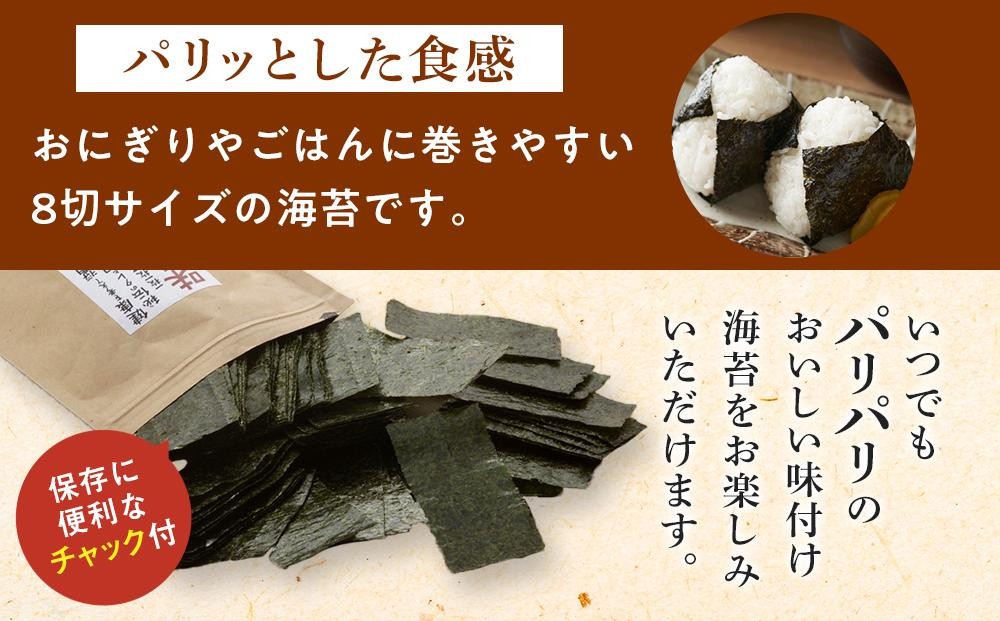 「味付け海苔なのに手がベタつかない」「おにぎりに塩をつけなくても、巻くだけでおいしい!」「おやつにも、おつまみにもぴったり!」など人気の味付け海苔です。