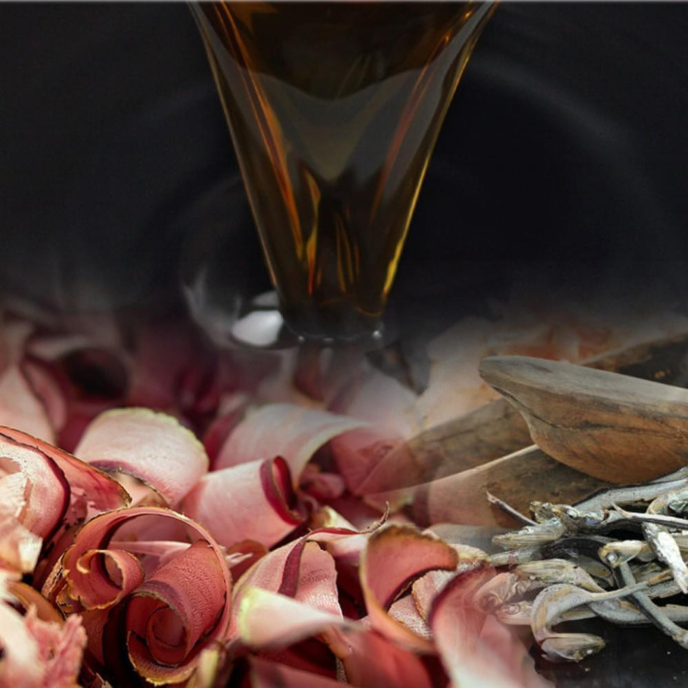 また、当店のもつ鍋スープは、「水のふるさと」と言われる福岡県朝倉で、昭和二年の創業より受け継がれてきた伝統の技術で醸造された「まるは醤油」を使用しています。