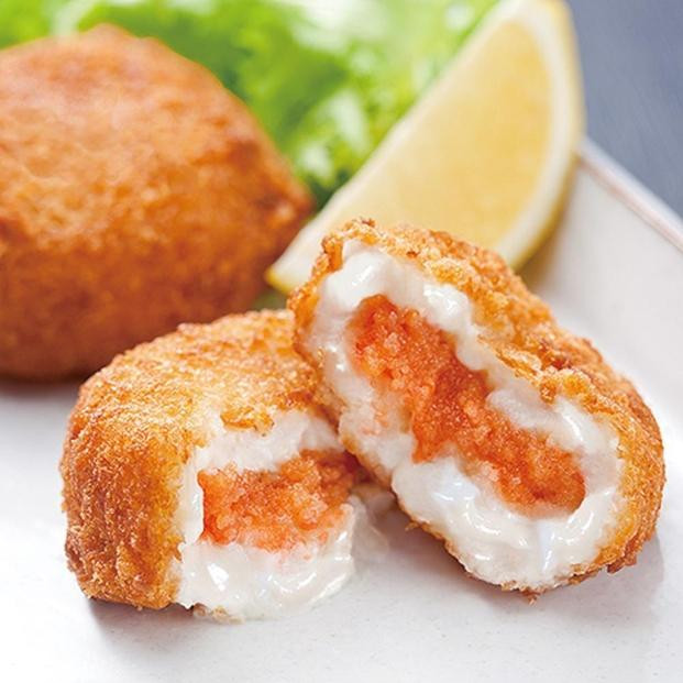 クリーミーなコロッケに無着色明太子をたっぷり包みました。