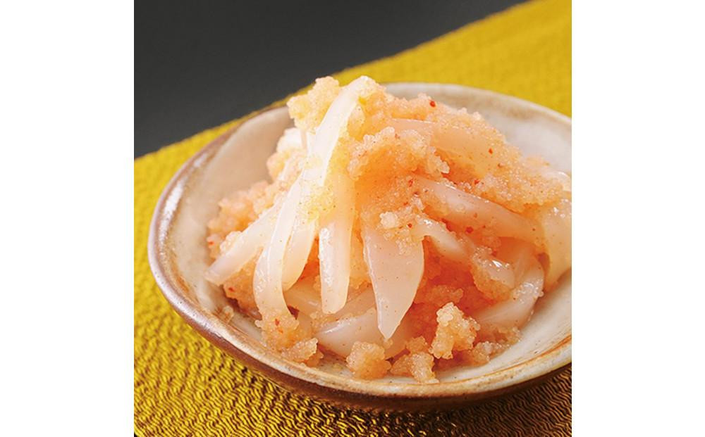 肉厚の甲イカは歯切れがよく舌触りもなめらかで、プチプチとした明太子といかの食感が良く