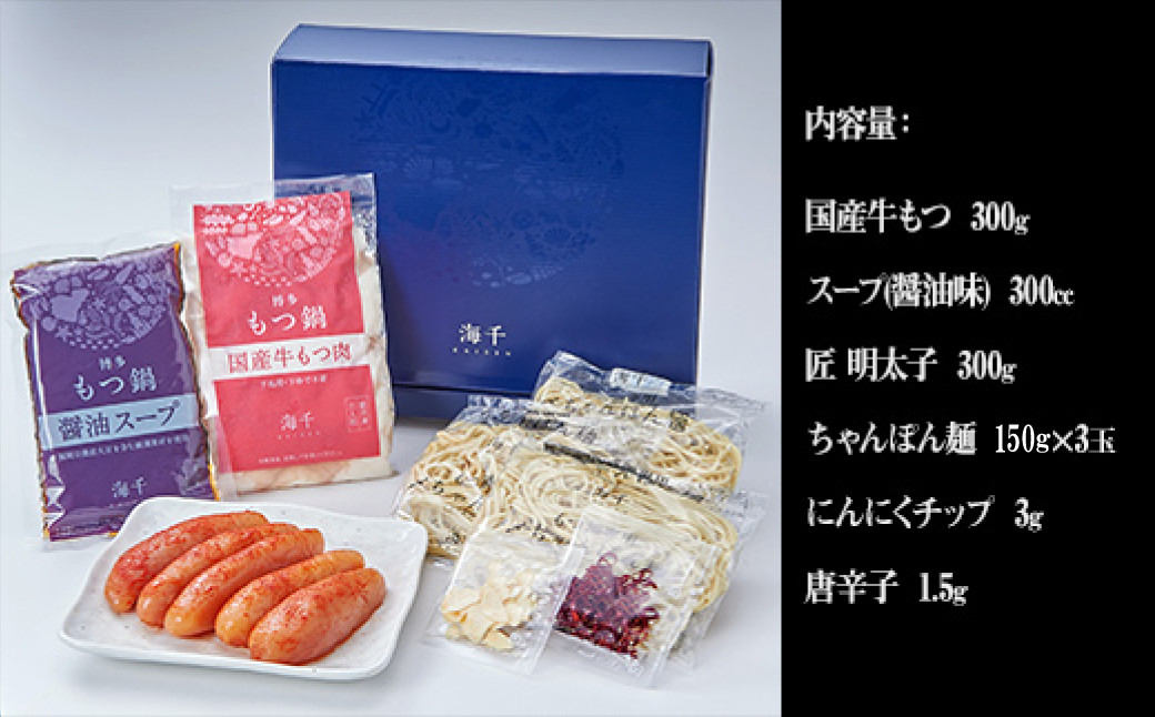 | 容量 | ・国産牛もつ300g ・スープ(醤油味)300cc ・匠 明太子300g ・ちゃんぽん麺150g×3玉 ・にんにくチップ3g ・唐辛子1.5g 【原材料】 牛もつ:牛小腸カット(国内産) 醤油加工品:醤油、米発酵調味料(米醸造液、ぶどう糖、 アルコール、食塩)、糖類(砂糖混合ぶどう糖果糖液糖、水飴)、おろしにんにく、酵母エキス/調味料(アミノ酸等)、 甘味料(サッカリンNa、ステビア、甘草)、保存料 (パラオキシ安息香酸)、ビタミンB1(一部に小麦・大豆を含む) ちゃんぽん麺:小麦粉、小麦たん白、食塩/かんすい(一部に小麦含む) 辛子明太子:すけとうだらの卵(ロシア又はアメリカ)、発酵調味料、食塩、かつお風味調味料、唐辛子、調味料(アミノ酸等)、甘味料(ソルビット、ステビア)、酸化防止剤(V.C)、ナイアシン、トレハロース、発色剤(亜硝酸Na) 薬味:にんにく、唐辛子 |