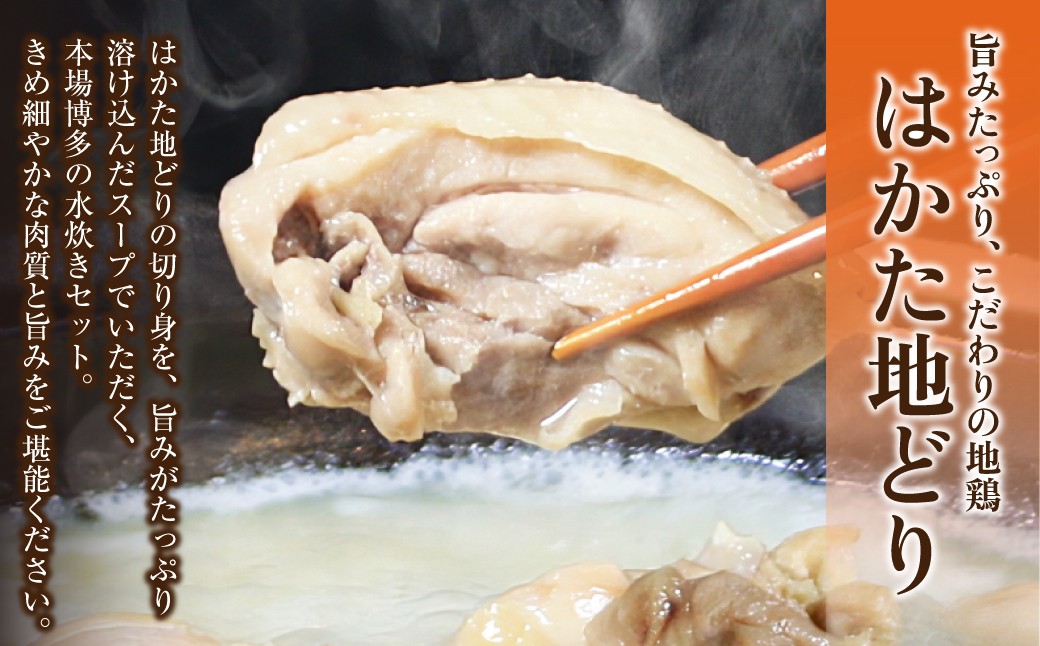 はかた地どりを旨みたっぷりのスープで頂く、本場博多の水炊きセット。