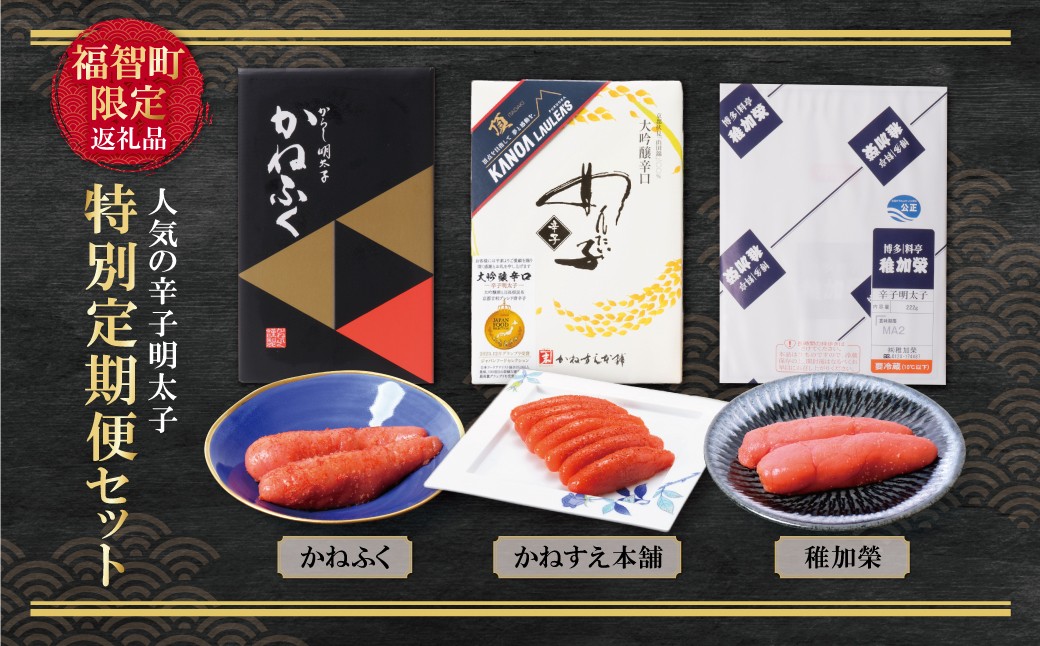 福智町限定!大人気の明太子3品を定期便でお届け! W99-81 福智町限定 明太子食べ比べ定期便(毎月・年3回)福岡 福智町 福智 辛子明太子 明太子 めんたいこ めんたい たらこ 一本物 無着色 海産物 定期便 3回 かねふく かねすえ 稚加榮 送料無料 2026年発送