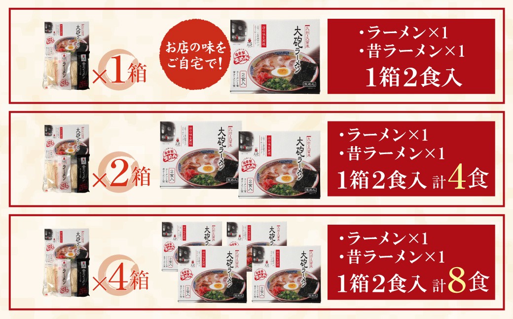 久留米ラーメンの真髄「呼び戻しスープ」発祥の老舗名店 大砲 生・豚骨ラーメン 箱入り 選べる1~4箱(2食~8食) W55