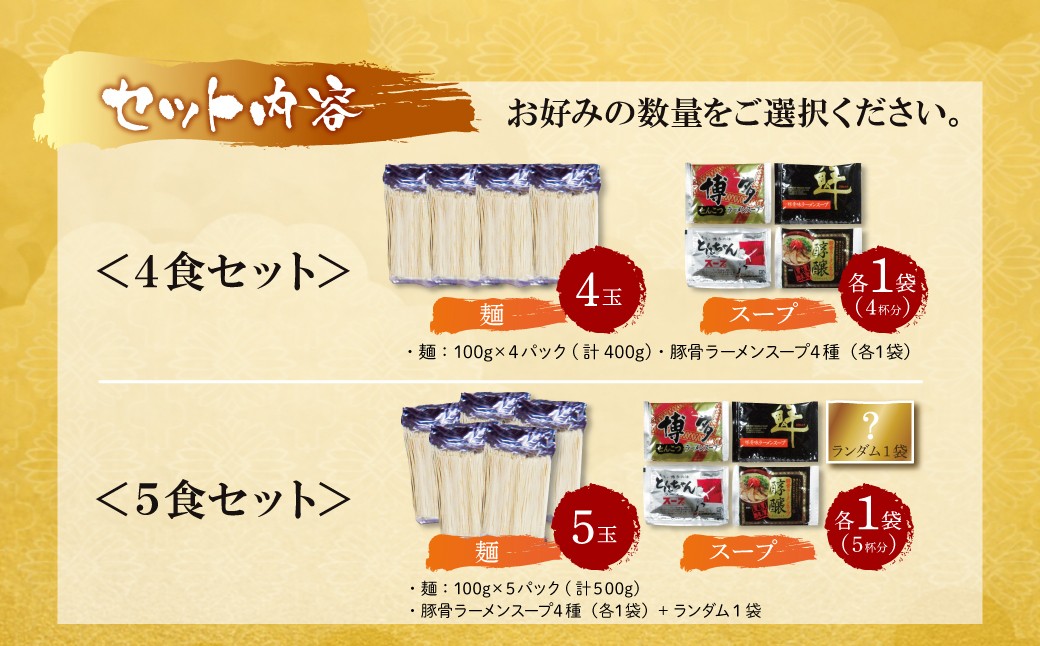 4種類のスープを楽しめる博多とんこつラーメン!! 選べる!博多とんこつラーメン4~5食 4種類の博多の福岡産スープ 豚骨 ラーメン 博多 福岡 簡単 本格 W86