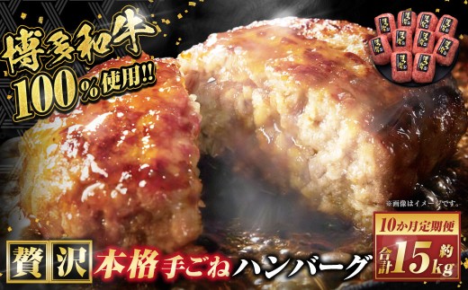 【10ヶ月定期便】博多和牛100% 贅沢本格手ごねハンバーグ 約15…