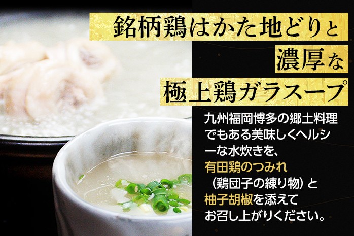 チョイスPayポイントと交換できる品 銘柄鶏はかた地どりを、はかた地どり鶏ガラスープで頂く、本場博多の水炊きセット。 博多水炊き(はかた地どり切り身・つみれ)セット 2~3人前 お取り寄せグルメ お取り寄せ 福岡 お土産 九州 福岡土産 取り寄せ グルメ 福岡県