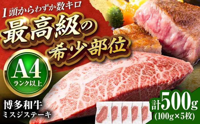 この味プレミアム。福岡の上質な黒毛和牛【博多和牛】をお届け致します。 【厳選希少部位】【A4〜A5】博多和牛 ミスジステーキ 約500g(100g×5p) 吉富町/株式会社MEAT PLUS [BGAB057] 肉 牛 牛肉 和牛 ブランド牛 高級 みすじステーキ 冷凍 ふるさと 福岡県