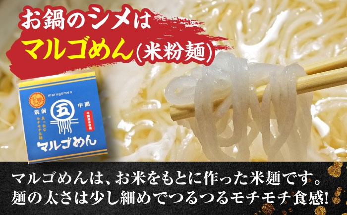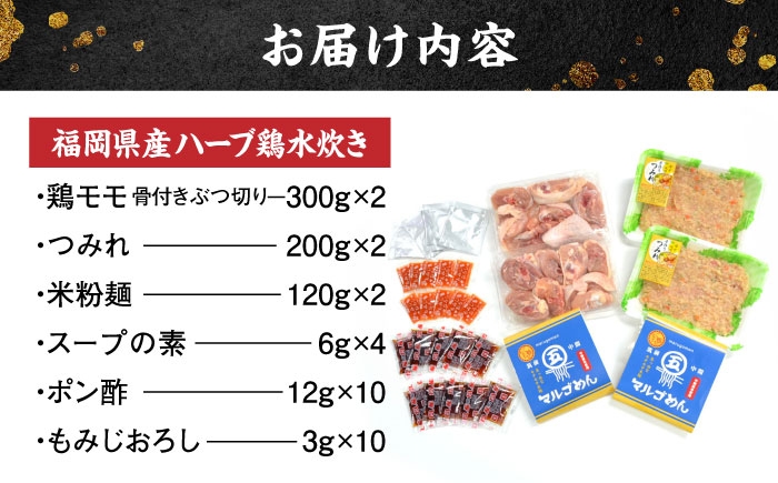 骨付き鳥モモ肉と柚子香る手作りつみれ。鍋〆に福岡県産米麺。 九州産ハーブ鶏 水炊き鍋2人前×2セット(計4人前) 〆はマルゴめん 吉富町/株式会社マル五 [BGAC018] 福岡県