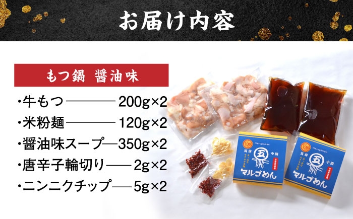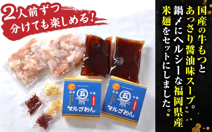 2人前ずつ小分けされているので2回に分けても楽しめます。 国産牛 もつ鍋 醤油味2人前×2セット(計4人前) 〆はマルゴめん 吉富町/株式会社マル五 [BGAC020] 福岡県