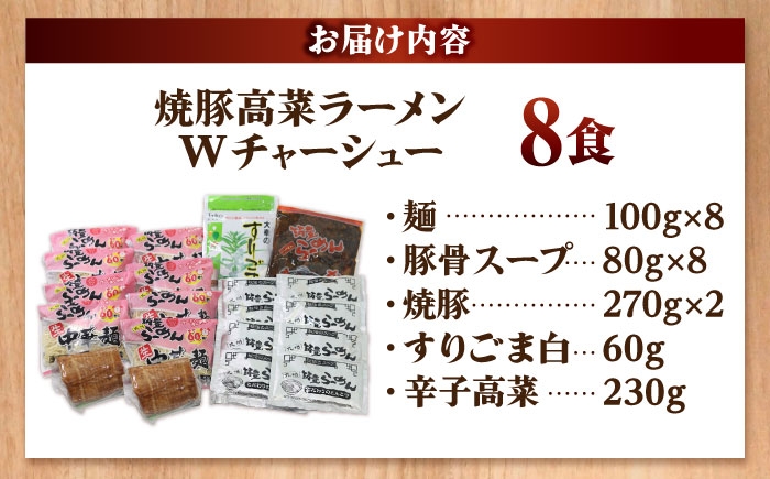 焼豚 高菜 生ラーメン とんこつ 8食セット Wチャーシュー 吉富…