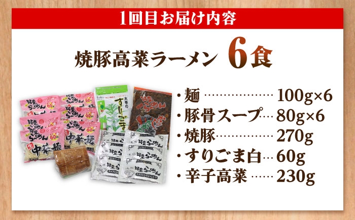 【全6回定期便】九州筑豊!山小屋ラーメン定期便 (焼豚・高菜・…