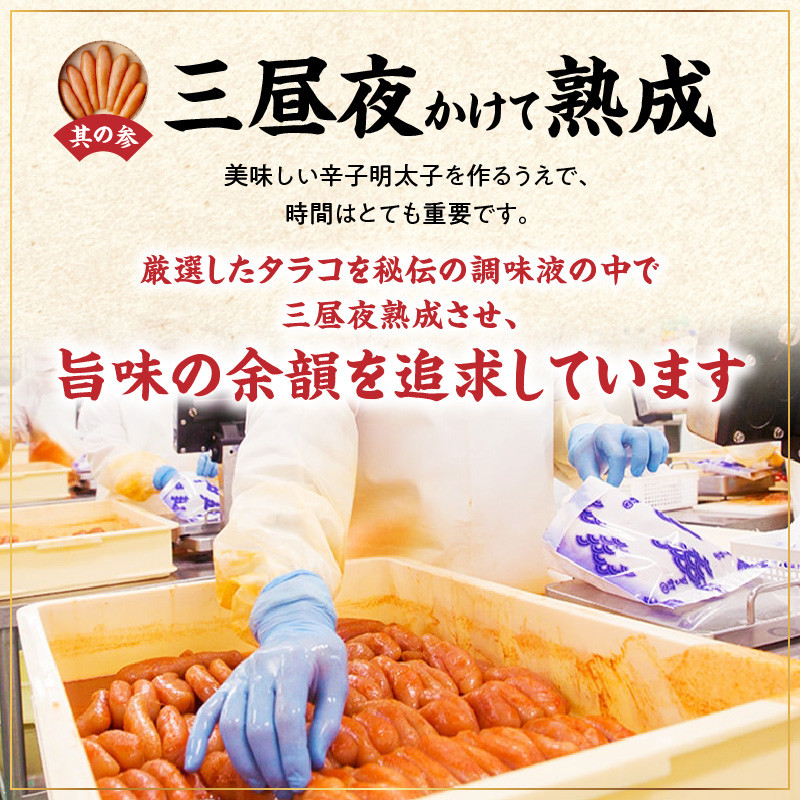 一口めは辛く、次からは旨い! 平塚“秘伝”の味がぎゅっと詰まった自信の辛子明太子です。 福岡のお土産といえば、「明太子」と言われています。 しかし、福岡には、200社を超える明太子メーカーがあるため、味の違いが分かりにくいとの声も聞かれます。 このような中、明太子を愛してやまない明太子専門店「平塚」の社長が「平塚」にしかだせない辛口明太子を目指し、昭和46年から創業しています。 今でも社長夫妻自らが毎日、何時間もかけて秘伝のタレを作っています。 ※仕入れや休日の関係で遅れる場合がございます。 ※年末年始は配送業者の休業期間や市場の休業期間の影響で配送が遅れますのであらかじめご了承ください。 ※冷蔵庫で解凍後、14日以内にお召し上がり下さい。 ※画像はイメージです。 ※長期不在などでお受け取りできなかった場合は、再送はいたしませんので、予めご了承ください。 ※お届け期間内に長期のご不在等ございましたら必ず備考へ記入、またはご連絡をお願いいたします。 ※離島はお届けできません。 <原材料> すけとうだらの卵巣・唐辛子、焼酎、食塩、調味料(アミノ酸等)、甘味料(ステビア、ソルビット)、塩化マグネシウム、酸化防止剤、(ビタミンC)、ナイアシン、酵素、着色料(赤102、赤3)、発色剤(亜硝酸Na)