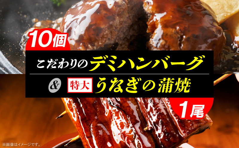 スタミナ満点!ビッグサイズのうなぎの蒲焼1尾とこだわりのデミハンバーグ10個 こだわりのデミハンバーグ10個&うなぎの蒲焼1尾(ビッグサイズ約300g)のセット K04605
