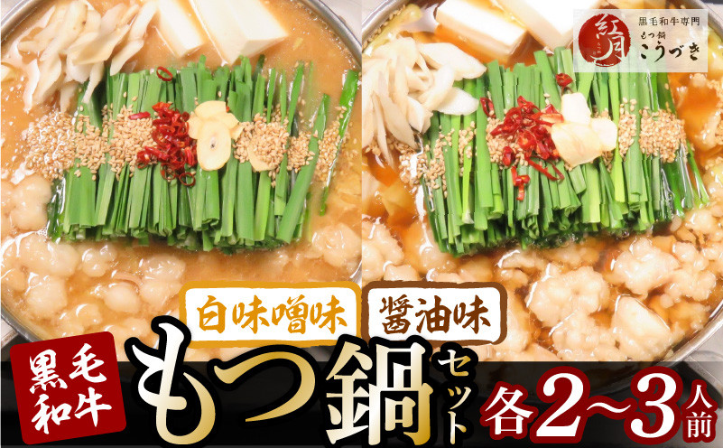 ご贈答に最適!高級黒毛和牛のとろけるモツを存分にご堪能いただけます。 【黒毛和牛専門 もつ鍋こうづき】もつ鍋セット白味噌味・醤油味各2~3人前 KO0905