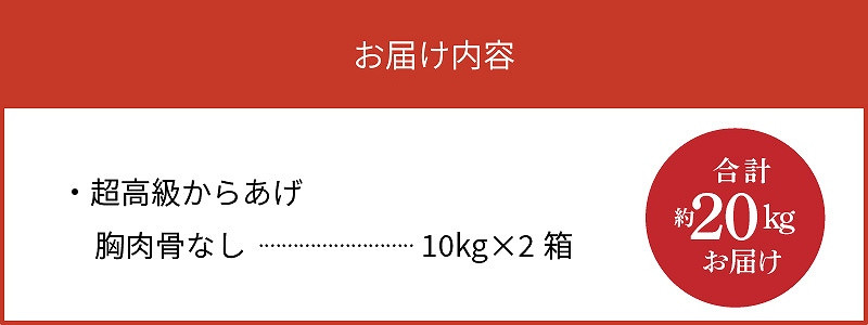 鹿児島県産ブランド鶏「南国元気鶏」たっぷりの100%オリーブオイルで揚げています 【聖林本店】鹿児島県産ブランド鶏で作る超高級からあげ (胸肉骨なし約20kg)KH4303