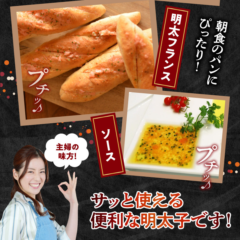 製造過程で薄皮が切れたり、大きさが揃わなかった明太子「中切れ」を詰め合わせました。