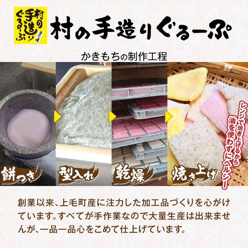 大きな焼かきもち 170g × 2袋 小腹 お茶菓子 もち米 大きい 軽い サクサク感 村の手造りぐるーぷ 上毛町産 加工品 手作業 素朴 かきもち お子様 ご年配 和菓子 福岡県 上毛町 送料無料
