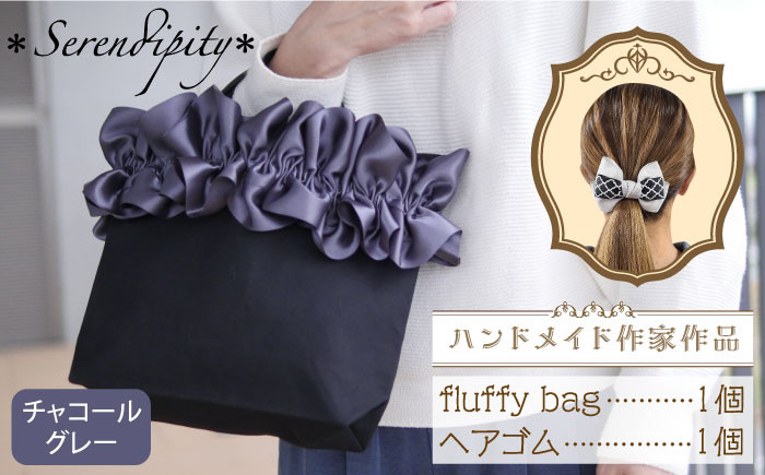 ハンドメイド作家による乙女心くすぐるバッグとヘアゴム 【ハンドメイド作家作品】fluffy bag ( チャコールグレー ) & ヘアゴム 1個 セット《築上町》【*serendipity*】 [ABAS004] 20000円