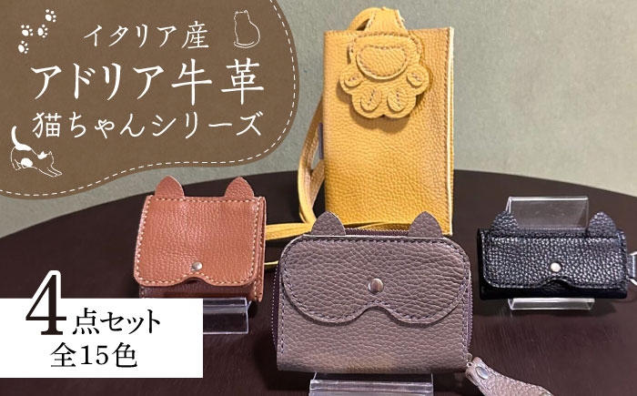 毎日手に触れる物は気持ちの良い手触りが一番 【職人手作り】猫ちゃんシリーズ4点セット・イタリア産アドリア牛革(全商品の色が選べる15色) 《築上町》 【たけもとかばん】 革製品 レザー 牛革 [ABAM020]