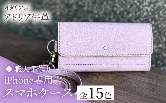 イタリア産牛革使用。スマホケース(iPhone専用) 【職人手作り】イタリア産 アドリア牛革 iPhone専用スマホケース(ショルダーベルト付)(選べる15色)《築上町》【たけもとかばん】革製品 レザー 牛革 [ABAM031]