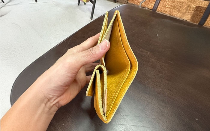 上質なイタリア産牛革を使用した、柔らかい手触りのベーシックな二つ折り財布です。