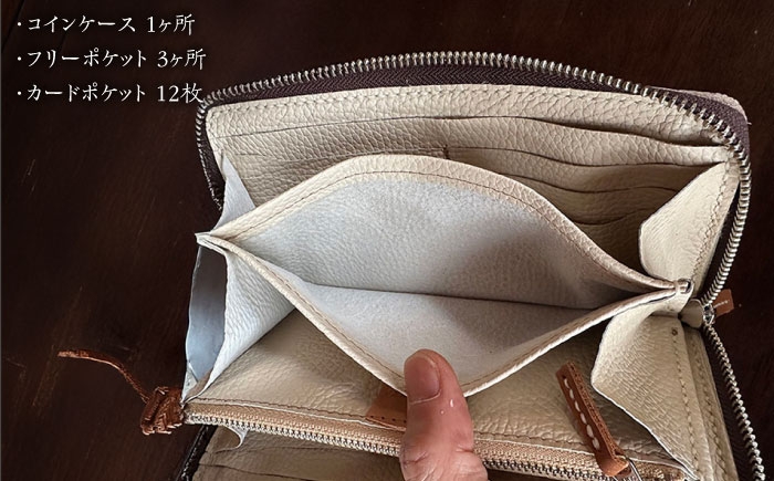 上質なイタリア産牛革を使用した、柔らかい手触りのラウンドファスナー長財布です。