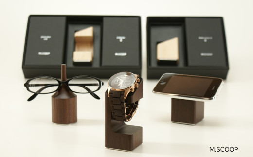 2008年、精緻な木工技術を活かしたブランド「M.SCOOP」をスタート。以降、大事なモノの定位置をデザインしたインテリア小物を発表し続けています。