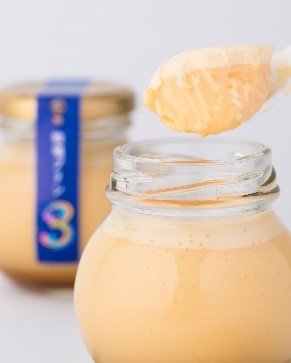 佐賀県みやき町の大富牧場の生乳(ノンホモジナイズ)と佐賀県産の卵、奄美諸島産のきび砂糖の3つの材料で作ったプリン。