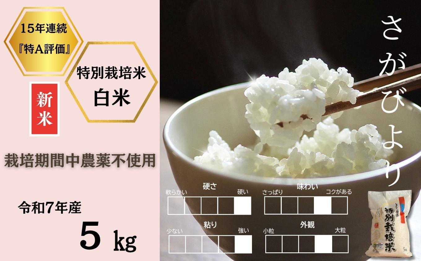 穀物検定協会食味ランキング15年連続特A評価の「さがびより」! <令和7年産新米 先行予約受付中・令和7年11月上旬以降順次発送>佐賀県産特別栽培米さがびより 白米5㎏(栽培期間中農薬不使用)[A0212-0001]