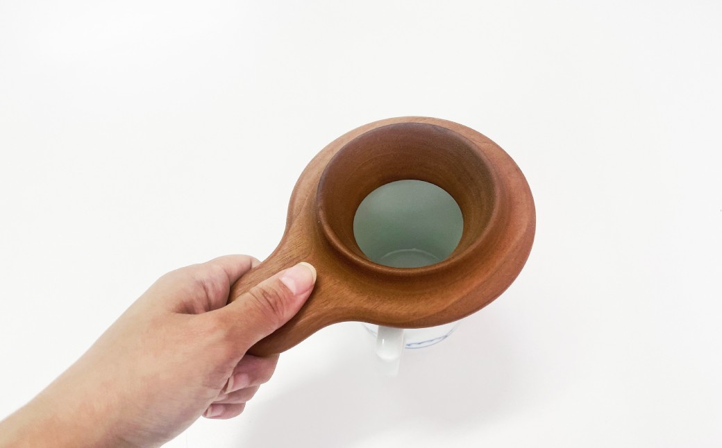 飛鳥工房は口に触れても安全な自然塗料を使った木製玩具や木製インテリア雑貨の製造を行うメーカーです。これは、ウォールナットの木から削り出しで製作された一人用のコーヒードリッパーです。手作業で丁寧に研磨された滑らかな手触りと木の香りが楽しめるアイテムです。フィルターを差し込んでカップに乗せ、コーヒー粉を入れ、お湯を注ぐだけで手軽にドリップコーヒーを楽しむことができます。キャンプなどアウトドアでも気軽にお使いいただけます。