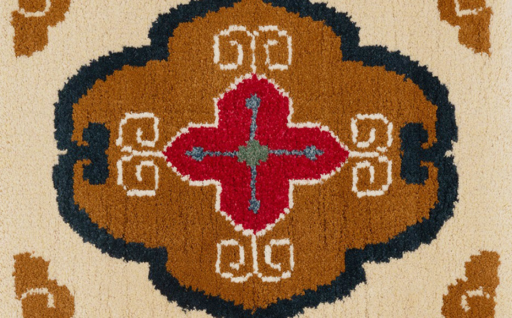緻密な文様が見事な手織緞通。高密度で厚手に仕上げた上質な手触りをご堪能ください。