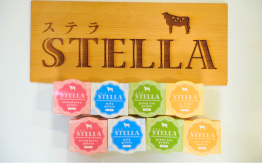 酪農家が搾りたての生乳で手作りしているジェラートをぜひ味わってください。 【セット】STELLA GELATO-ステラ ジェラート(ミルク・いちご・抹茶・きなこ)