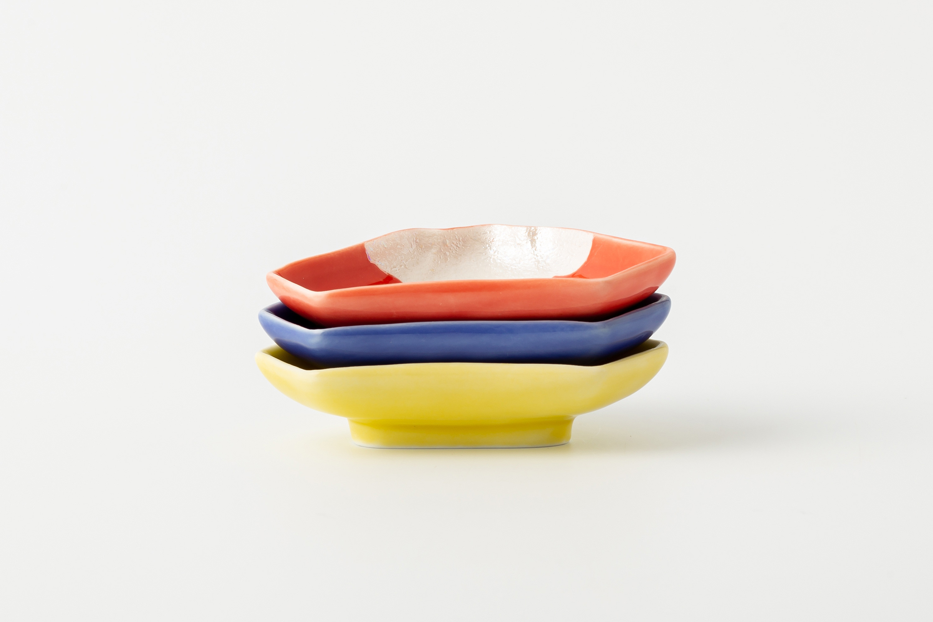 富士山をモチーフにした華やかな三色の天塩皿セット。/食器 ギフト お祝い 有田焼