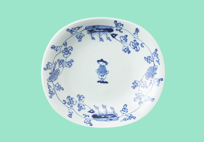 有田焼 しん窯青花 唐草異人 両切カレー皿
