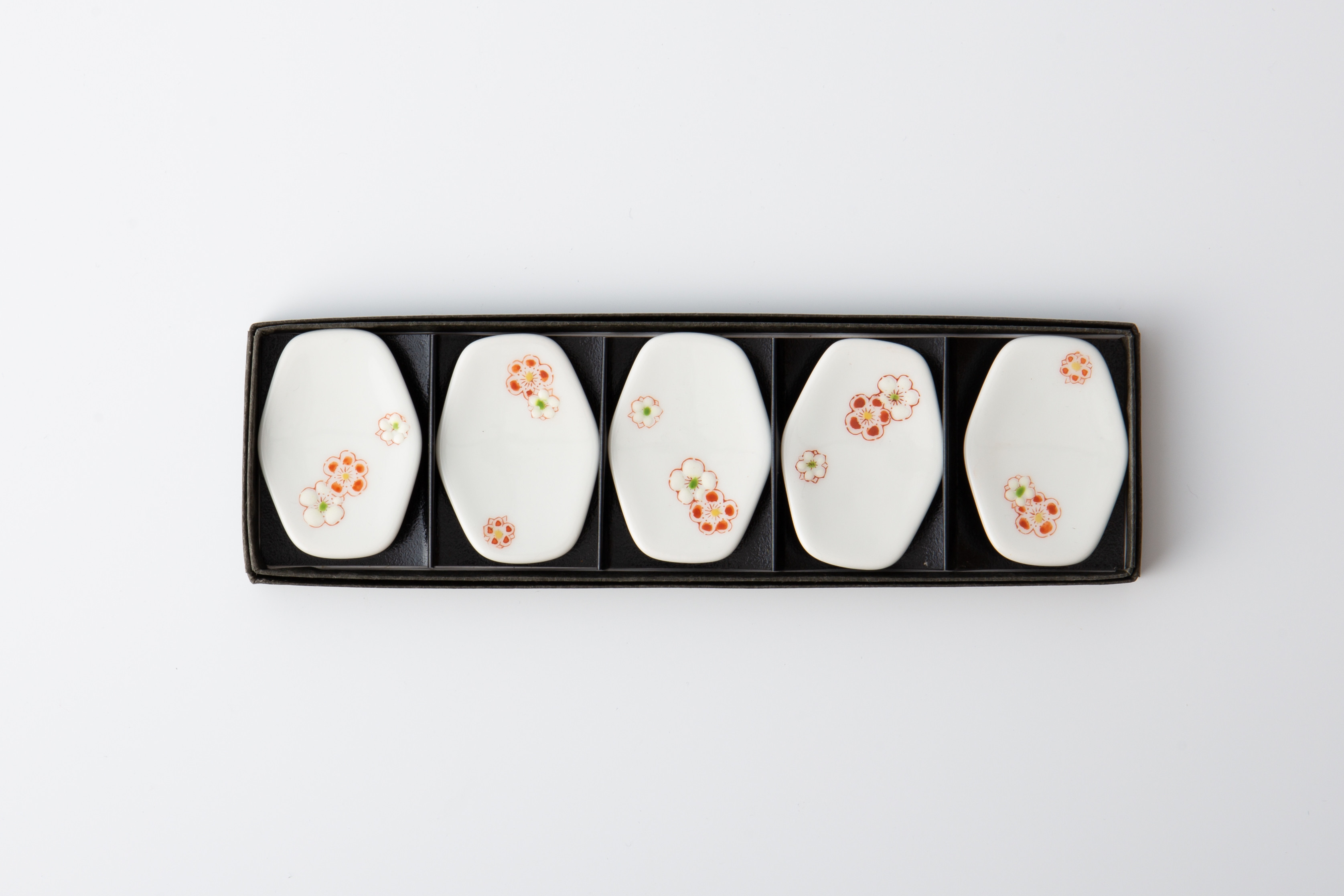有田焼 紅白梅箸置き 5個セット 肥前赤絵窯元鷹巣